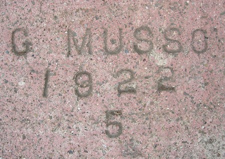 Pink concrete appears to have been a brief fad in the early 1920s. I usually don’t see it with dates, though. This gives me a range of dates for G. Musso from 1922 to 1940.