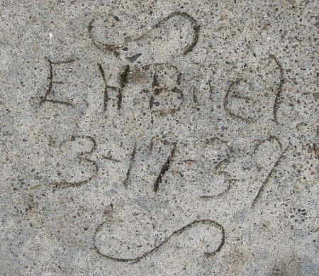 I found another 1939 example of Ensor Buel’s ebullient mark up in the Broadway Terrace hills two years ago, but that was on the cracked driveway of an empty firestorm lot and it may be erased by now. This one’s more secure.