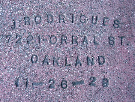 I like this mark a lotone, because it’s crisp and uses red concrete, and two, because it documents Rodrigues at both addresses (7221 Orral Street and 1619 73rd Avenue) in the same year.