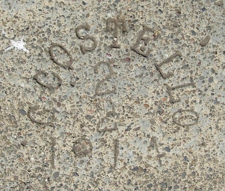 More ancient pavement from old Elmhurst. This takes G. Costello back another year, and look at this, he put the month and day inside.