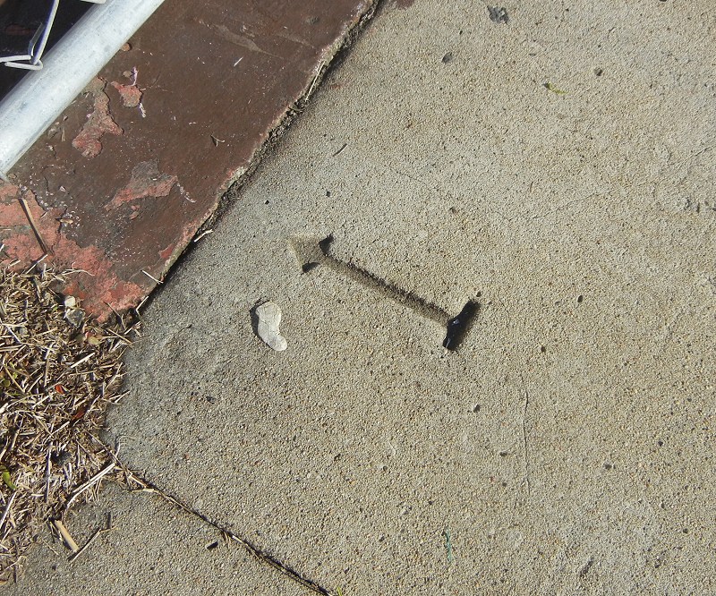 These arrows in the pavement point away from the street. On the north side of 104th, they appear to correspond to the edge of driveways. On the south side, they don’t. On 103rd they only appear on the south side.