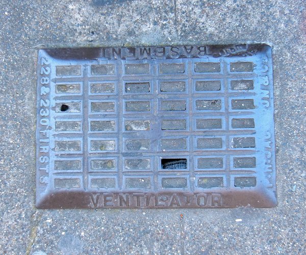Older parts of downtown Oakland feature these iron grates in the sidewalk. Unlike the purple glass and concrete “vault lights” you’ll also see around downtown, the grates were for ventilation. I collected the following photos during an hour’s walk east of Broadway between 19th and 14th Street.
