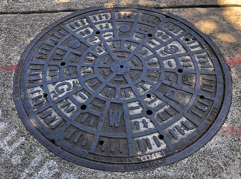 Some day, PG&E will have to replace them with their own branded lids, which are also interesting and attractive. I hope someone at that gigantic company is a historian who, in collaboration with the city’s heritage community, will see to it that some of these old lids are preserved.
