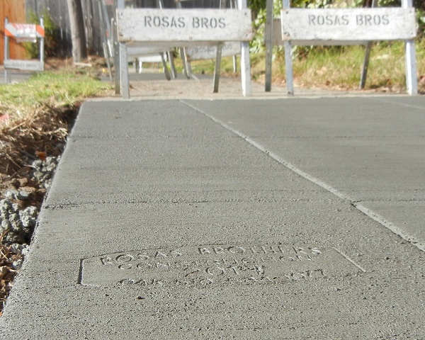 The Rosas Brothers just completed repaving a sizable stretch of sidewalk along my street in the past week but sadly they didn’t leave any of their company paving stamps on the new concrete.