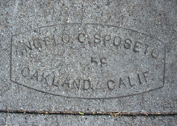 His work on Oakland sidewalks is scarce and scattered. An Oakland Tribune item mentions him as a concrete contractor in 1946. The earliest sidewalk mark I have of his is from 1947, showing that he was a member of Local 594 of the OPCFIA at the time.