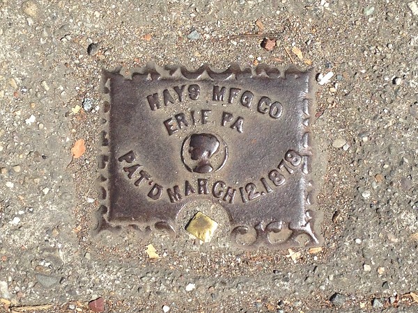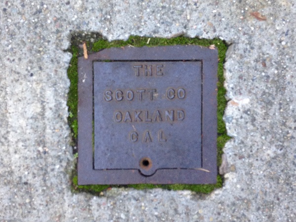 This pair of well-preserved covers made by the Hays company is on Piedmont Avenue. The Hays company still exists and is in the same business! Read all about it at haysfluidcontrols.com.