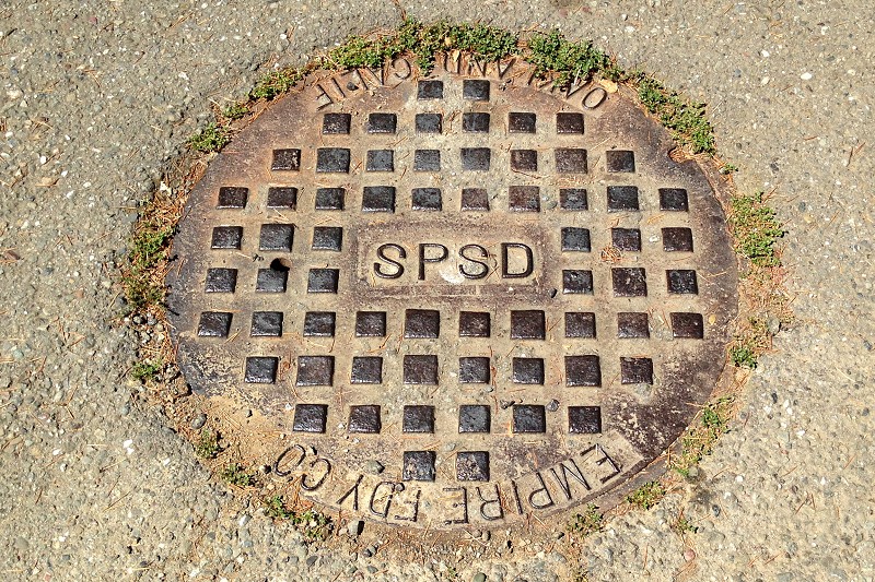 This utility hole cover sits on Keswick Court, on the south side of Shepherd Canyon. My searches for any information about SPSD have drawn a total blank. It might stand for the San Pablo Sanitary District, which existed from 1921 to 1978 when it became the West County Wastewater District. Maybe whoever installed the sewer line down Keswick bought SPSD’s outdated hardware, or the Empire Foundry had a stack lying around. I mean, who would care?