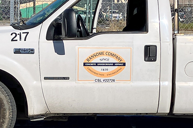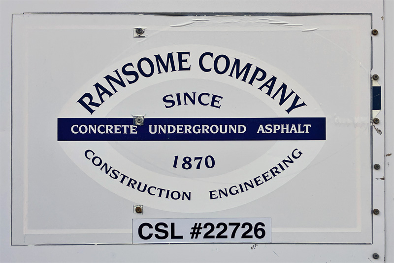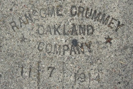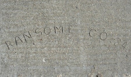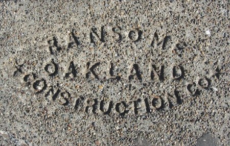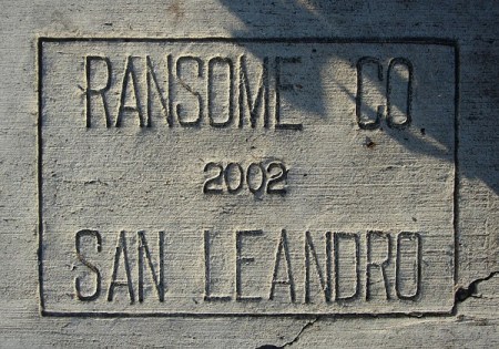 I’ve seen some Ransome Crummey stamps from 1916 out in the Ingleside neighborhood of San Francisco, which is about when they were first building that neighborhood. And yesterday at Arguello and Geary in SF, I saw a big patch of new sidewalk drying, and the A-frame barriers were all labeled Ransome (510) 686-9900. Is it the same company?