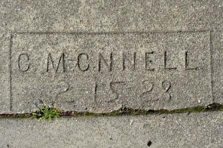 Few of McConnell’s sidewalk marks bear dates. One from 1927 is hand-written. A few 1928 dates survive, like this one at 2215 E. 29th Street.
