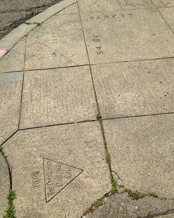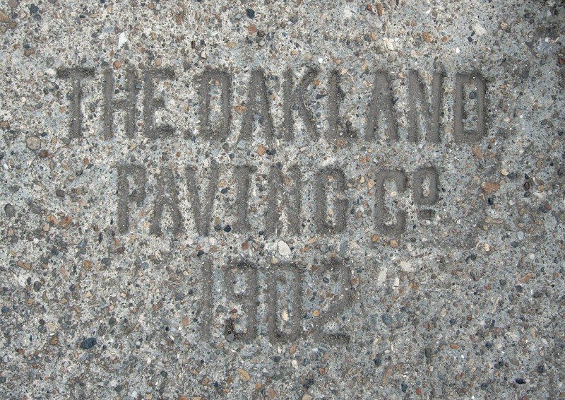 The oldest surviving sidewalk stamps from Oakland Paving Company — excuse me, The Oakland Paving Co. — are from 1902.