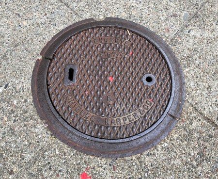 Shields, Harper is a regional firm specializing in fuel-related hardware that was founded in 1917, apparently in San Francisco, and is now headquartered in Martinez. Their first Oakland outpost, in the 1930s, was a plant at 1212 Jackson Street (the site of the Alcopark structure) and offices at 361 17th Street. But I remember their small shop at the corner of Broadway and 51st Street, where they moved in 1948 and stayed into this century. It had an opaque frontage, with glass brick windows, and having no idea of what they did I fancied that angels had a secret CIA-type agency there.
