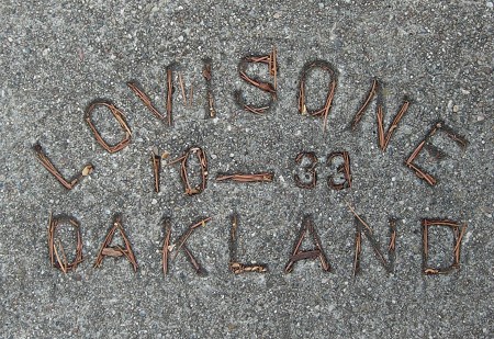 This is a good time to mention that I will be giving a talk to the Oakland Heritage Alliance about Oakland’s sidewalk stamps on Thursday, January 15, at 7 pm up at Chapel of the Chimes. Watch for details over there.