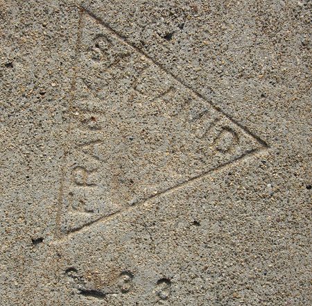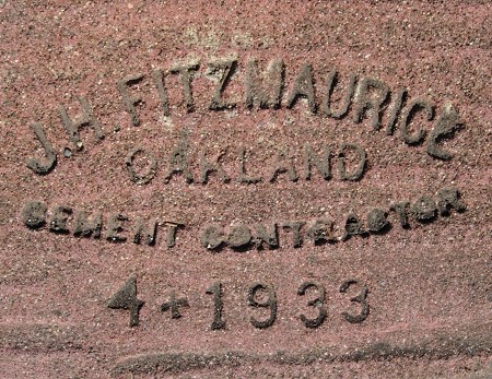 This is satisfying, because I’ve recorded several other Fitzmaurice marks from this year, but the date has always been handwritten. Here’s a beautifully stamped date, AND in the rich red concrete of the Havenscourt neighborhood.