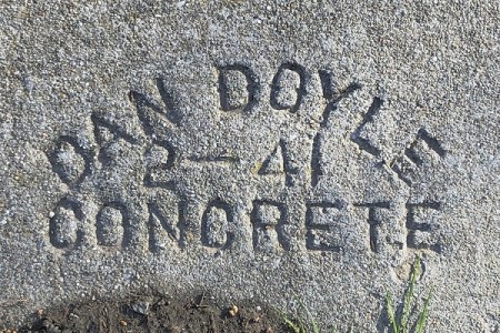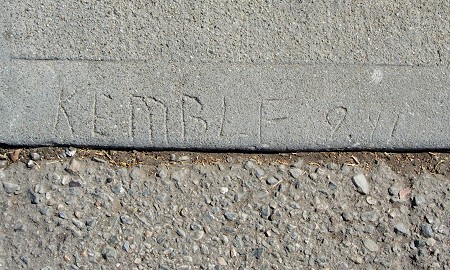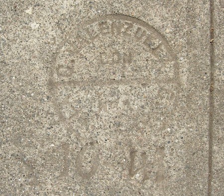 103rd and 104th Avenues are interesting. The curbs were laid out without driveways, and each lot had a stamp with its number in the sidewalk. the sidewalk makers also put arrows in the pavement, but I’m not sure what the mark signifies, perhaps the location of the water lines. Each homeowner had to pay a concrete worker to cut out a driveway, and almost all of them are crude and unsigned.