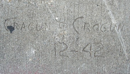Old East 14th Street isn’t much for sidewalk stamps, because major thoroughfares get redone in large anonymous projects, but here’s an old Cragun & Cragun mark.