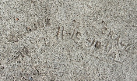 South Elmhurst’s sidewalks are in sad shape, but a few marks survive there.