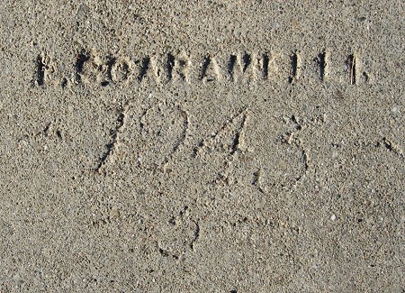 No clue as to who made this driveway. The only makers I know with the initials “J. S.” are Joe Silva and J. Sorenson, and the only “B. S.” would be Bowen & Stone. None of those seem plausible to me.