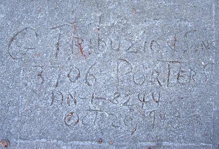 Here’s a great mark by G. Tribuzio & Sons that includes their address (3706 Porter Street) and phone number as well as a nice date. It’s my first example from the 1940s, and it establishes that the time G. Tribuzio did business alone overlapped the time he worked with his sons, from at least 1948 to 1954.