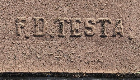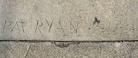 Very interesting: besides being the first hand-drawn mark I’ve found by Hayward contractor Lee Railsback, this sprawling example in a driveway shows that he signed his name Railsbach. Also note the “Greek E’s” he used.