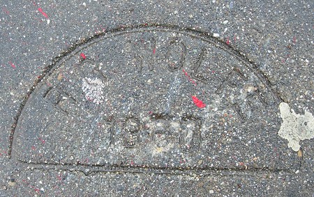 The concrete here in the produce district is quite old and battle-scarred, much of it laid down in the 1910s apparently by G. Skidmore.