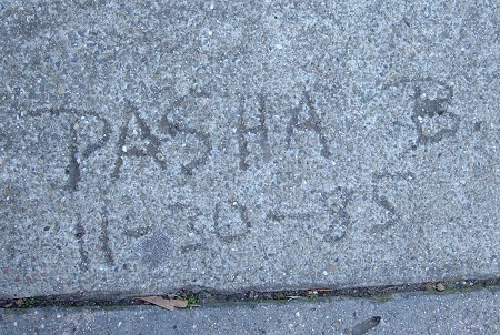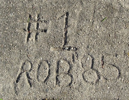 It’s my theory that Rob was marking one of the parking places on his lot. There’s another “Rob” mark farther up.