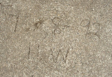 Most of the pavement in front of the Elmhurst Baptist Church is not marked, but this patch is.
