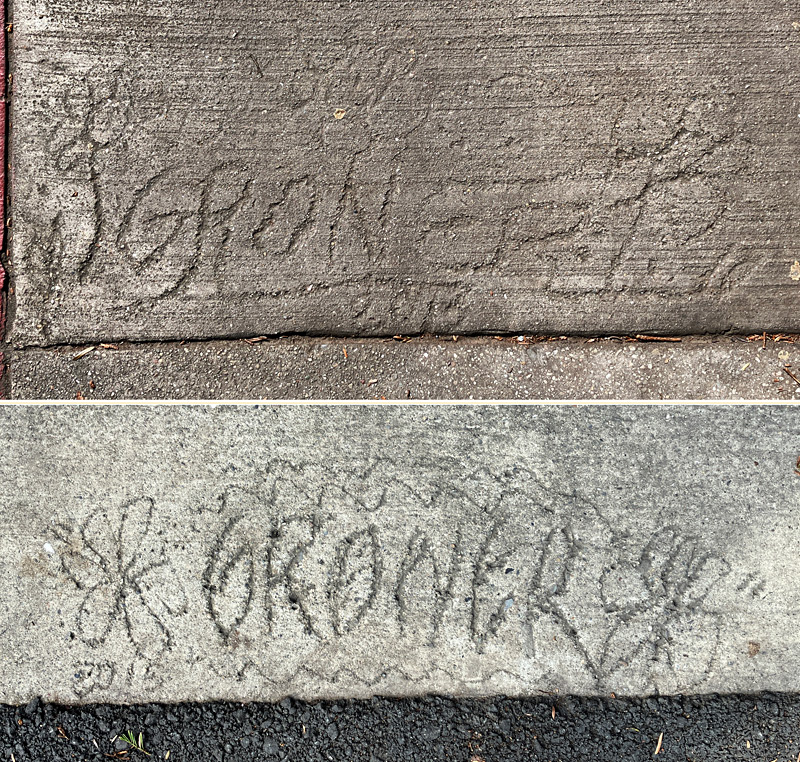 You will not find a more obscure street in this town, but “Groner” decorated the fresh concrete with these distinctive marks. It seems to have happened in 2015.