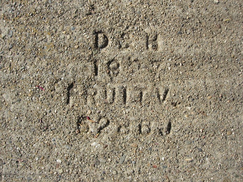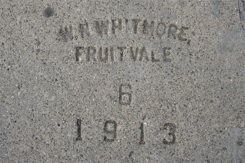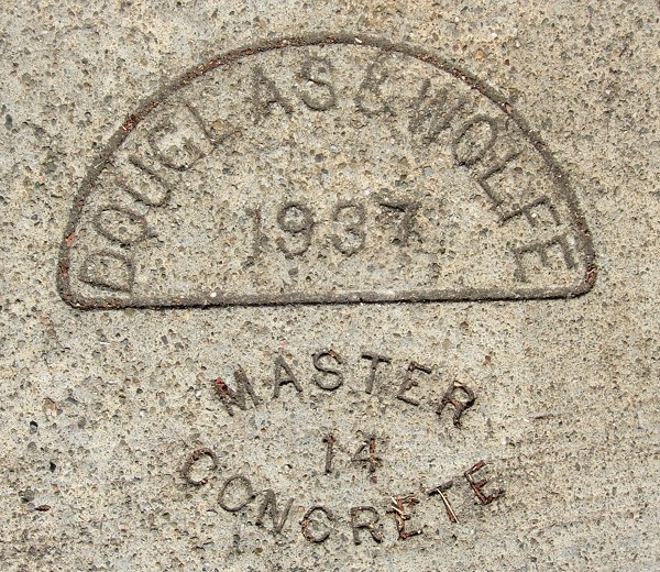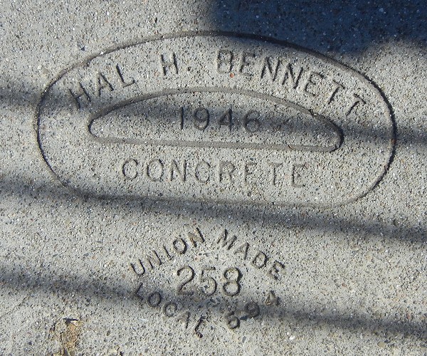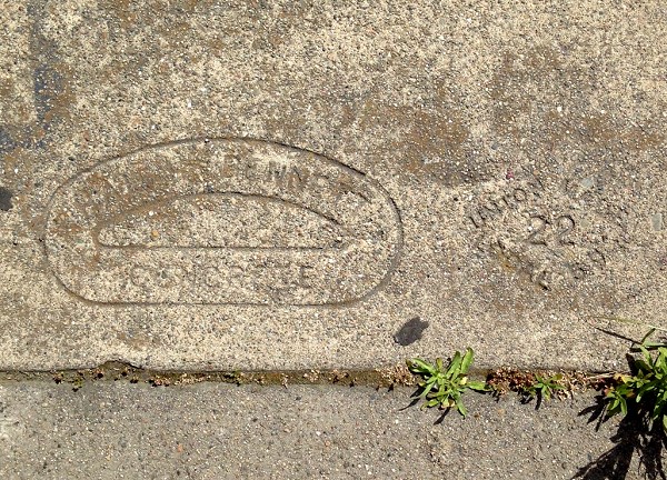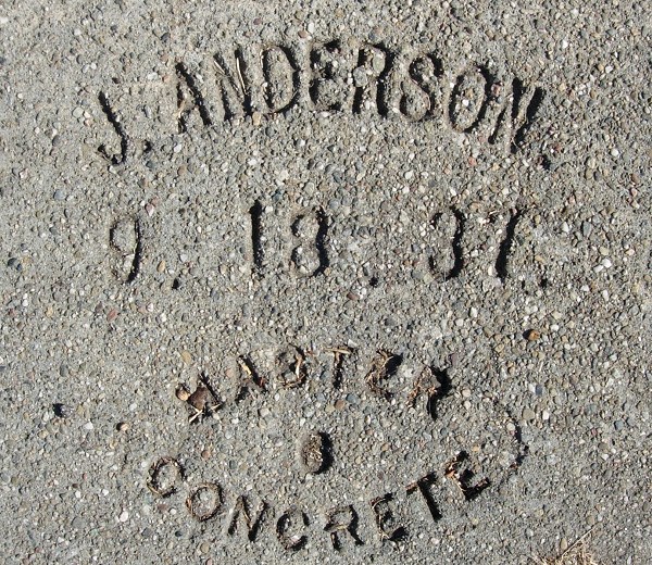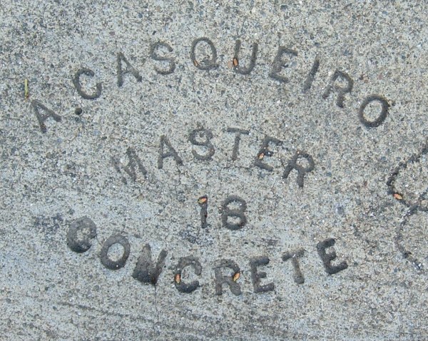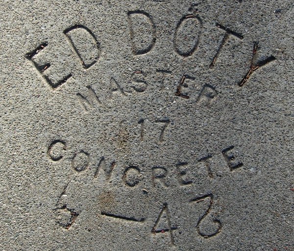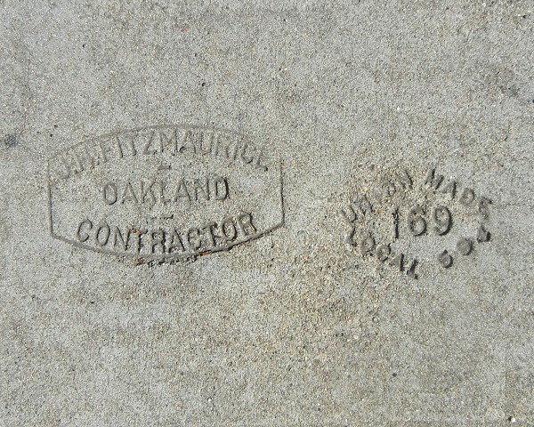 A tessellation is a set of polygons that fills a plane without gaps or overlaps. Pavement makers often draw grooves in patterns like this example from Piedmont; I think one reason is to help the concrete break unobtrusively, along the grooves, rather than spiderwebbing all over a nice clean driveway. Another reason would be to help out the next worker who has to patch or repair the job by enabling them to cut the old concrete neatly. But mainly I think it’s just to show artisanship and decorate something utilitarian.