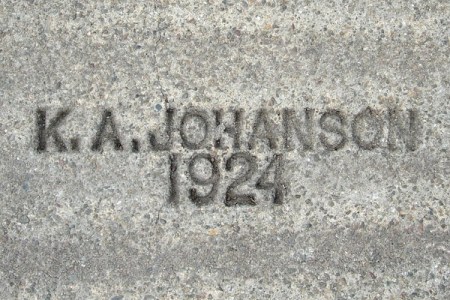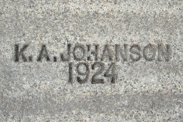 Founder Olin Clement Jones (1890-1954) was born and raised in northwestern Iowa. He married there and started a family, then all of a sudden moved to Berkeley in 1923 or 1924, where he started a concrete business. I have documented stamps by his firm from 1929, 1937, 1938 and 1939 in Oakland. His two sons Harold Rex (1916-2003) and Robert Carlson (1920-2007) joined the firm during World War II and its name changed. It earned its general contractor’s licence in 1947 and its general engineering contractor’s licence in 1954. Apparently by that time it no longer stamped sidewalks. Under Harold’s guidance, O.C. Jones & Sons prospered, and today its trucks can be seen wherever contractors work in middle California.