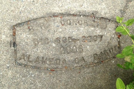 I will not undertake to survey Emeryville, Alameda, Berkeley or San Leandro. However, I’ll be keeping my eyes on the ground at all times and places for various reasons. One is to scavenge any missing dates of Oakland sidewalk makers. Another is to determine answers to some nagging questions that didn’t occur to me until I was well into my survey, so there are reasons to stay alert even in territory I’ve already covered. And, of course, I’ll continue to document new stamps as they appear in years yet to come.