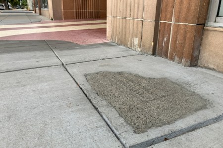 Our old sidewalk stamps are usually broken up without ceremony when the sidewalks are renovated. On rare occasions they’re preserved, like the pair of stamps by The Gray Bros. A.S.P. Company at the building Piedmont Pianos has occupied forever. They date from the early 20th century.